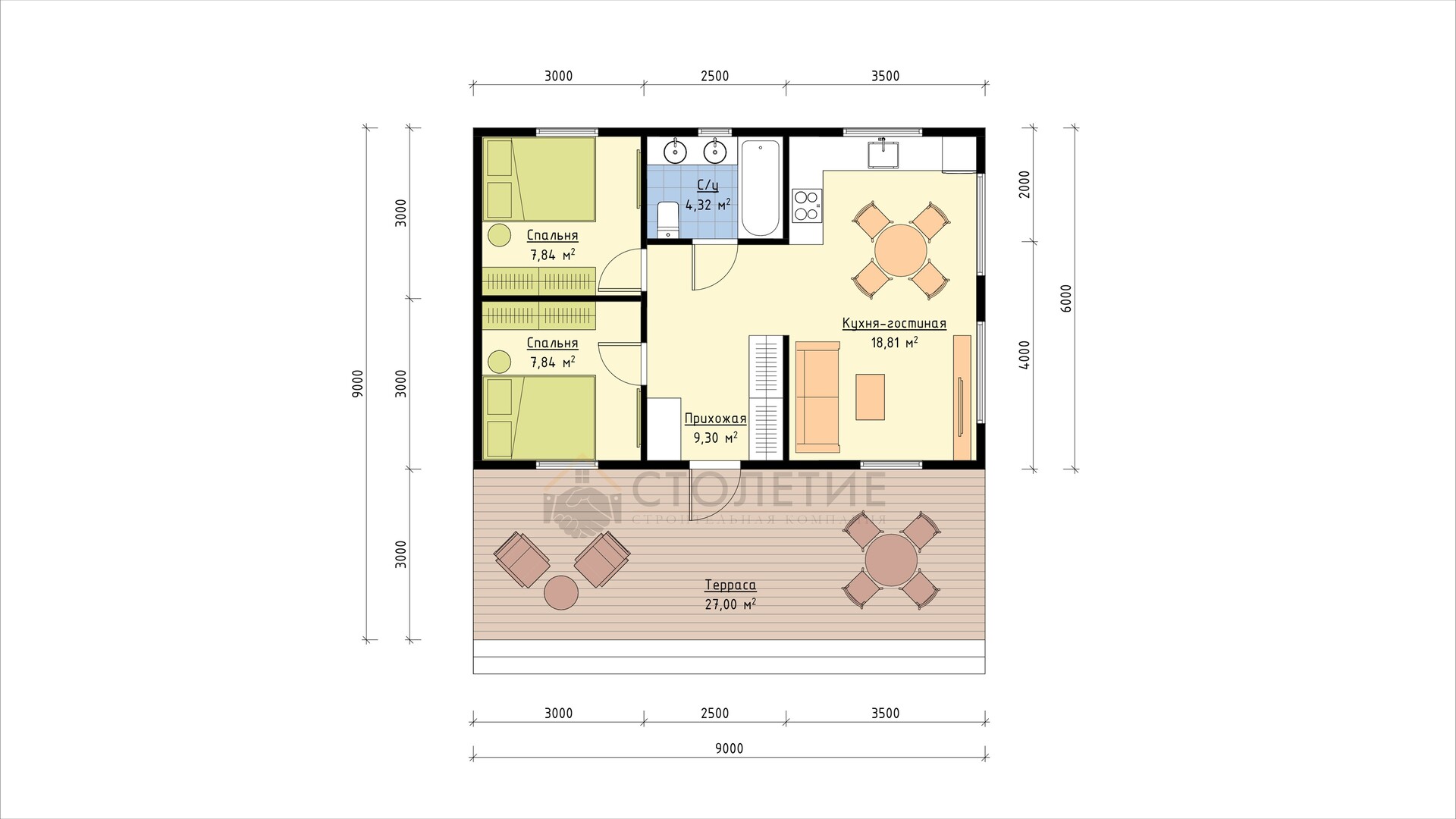 Дом каркасный 9 x 9 ДК-198
