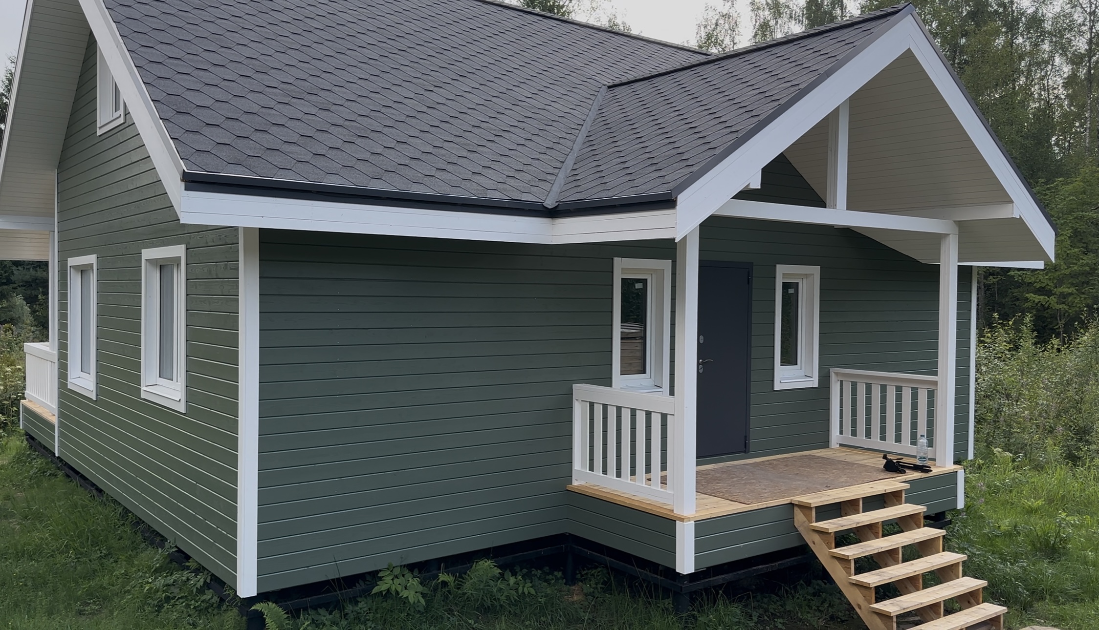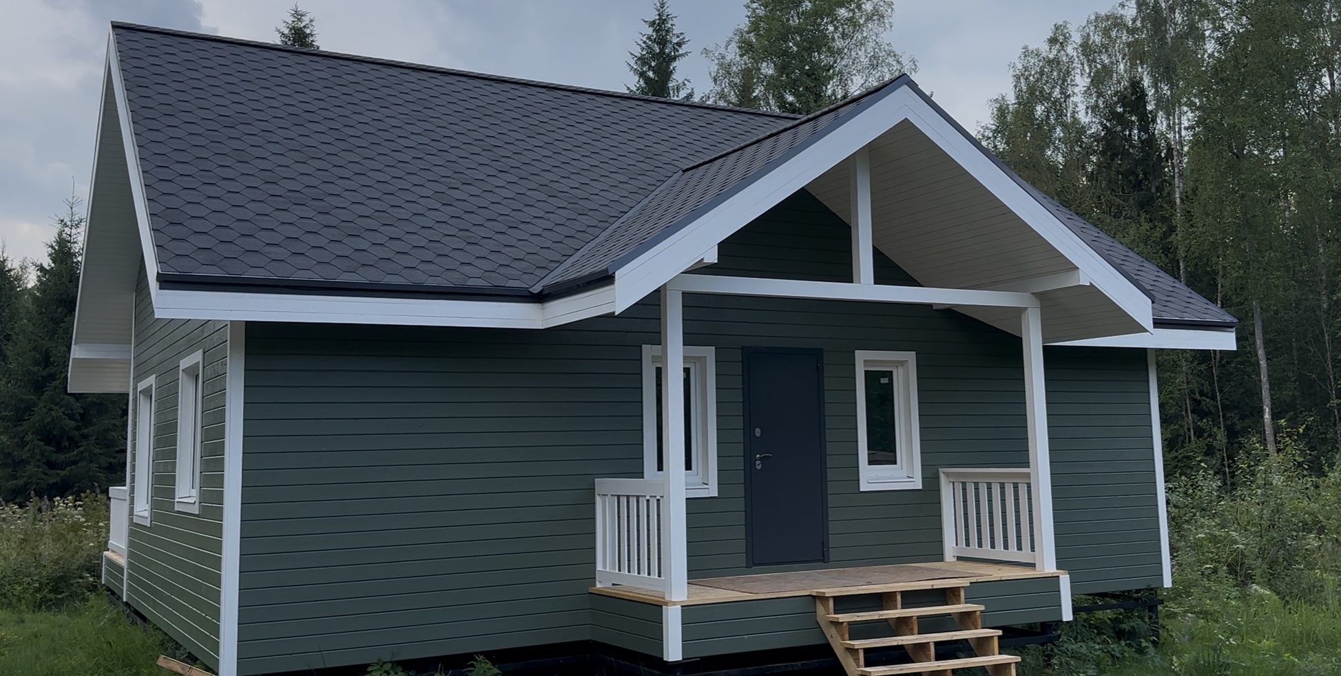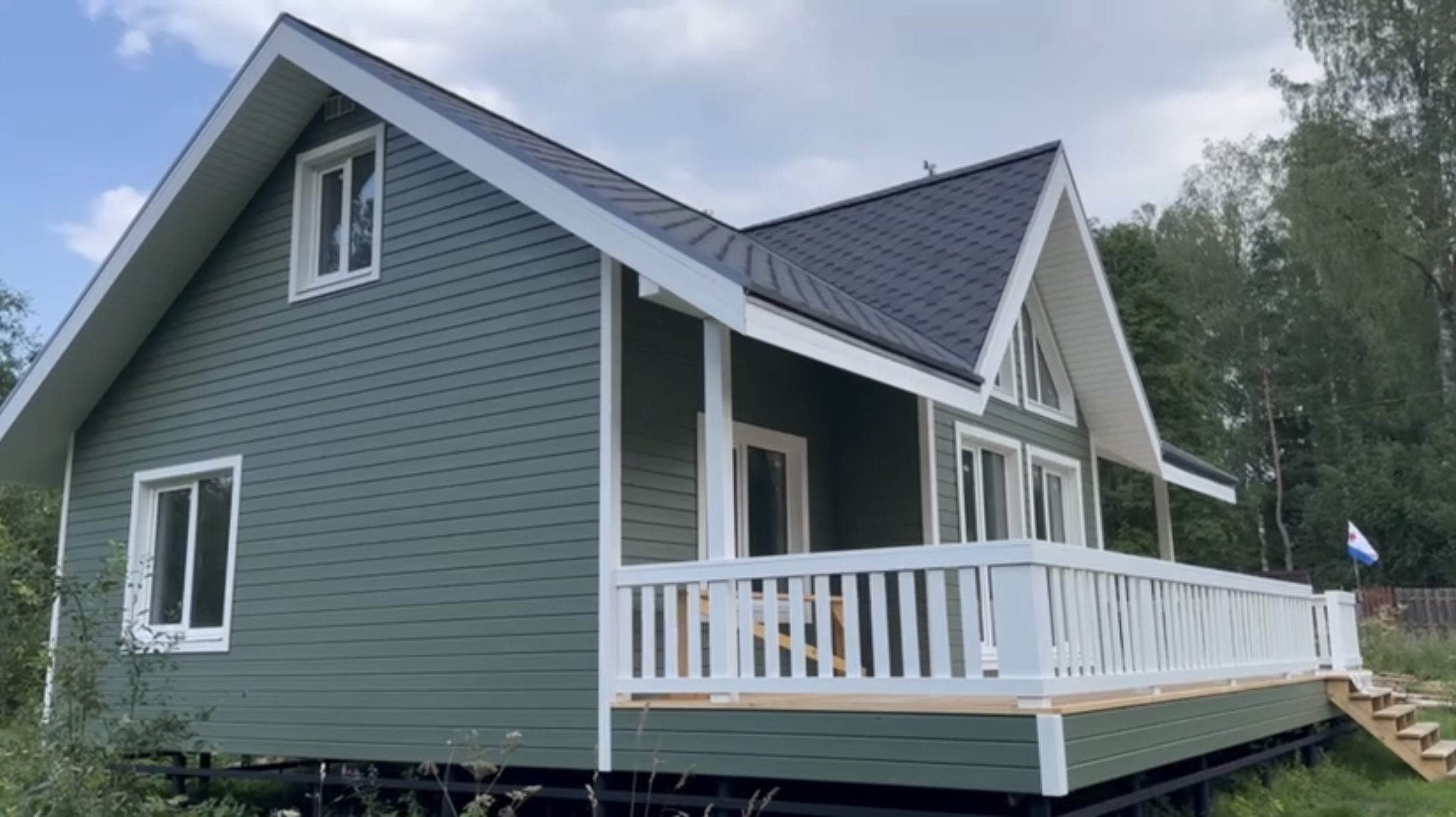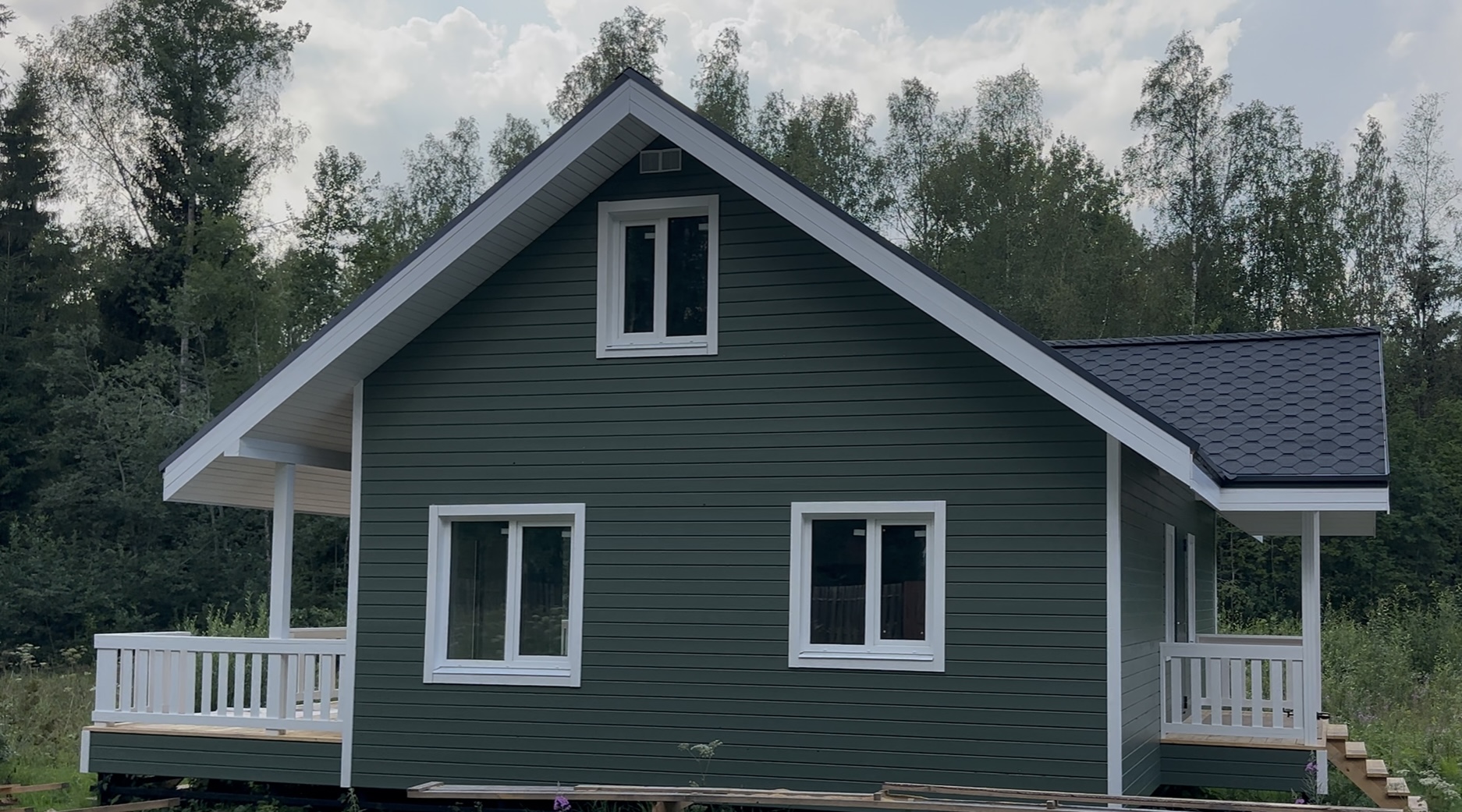 Каркасный дом в Кингисеппском районе КП Нежно Ленинградской области по проекту ДК-103 с двумя террасами и вторым светом.
