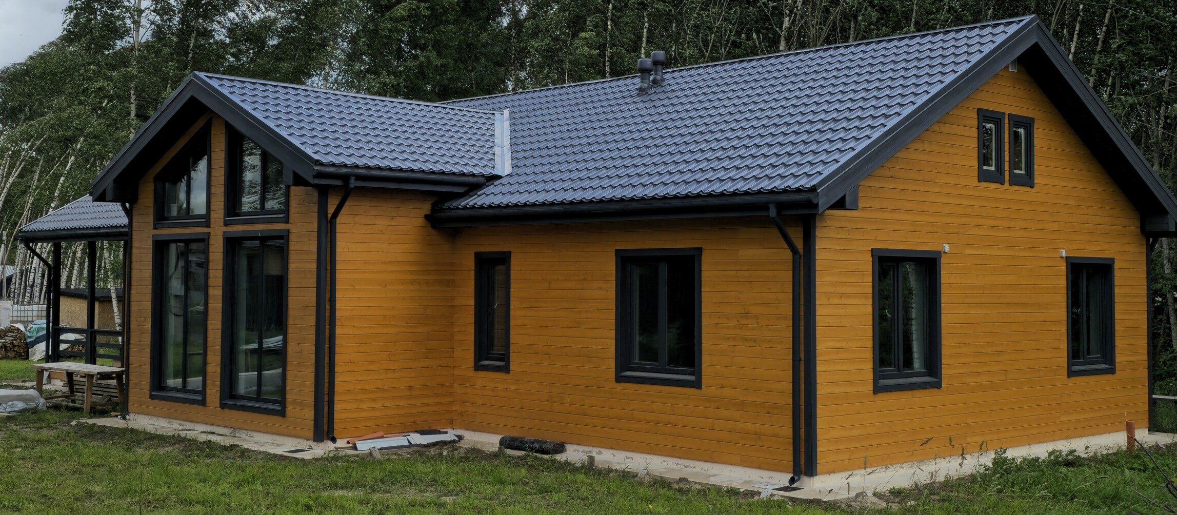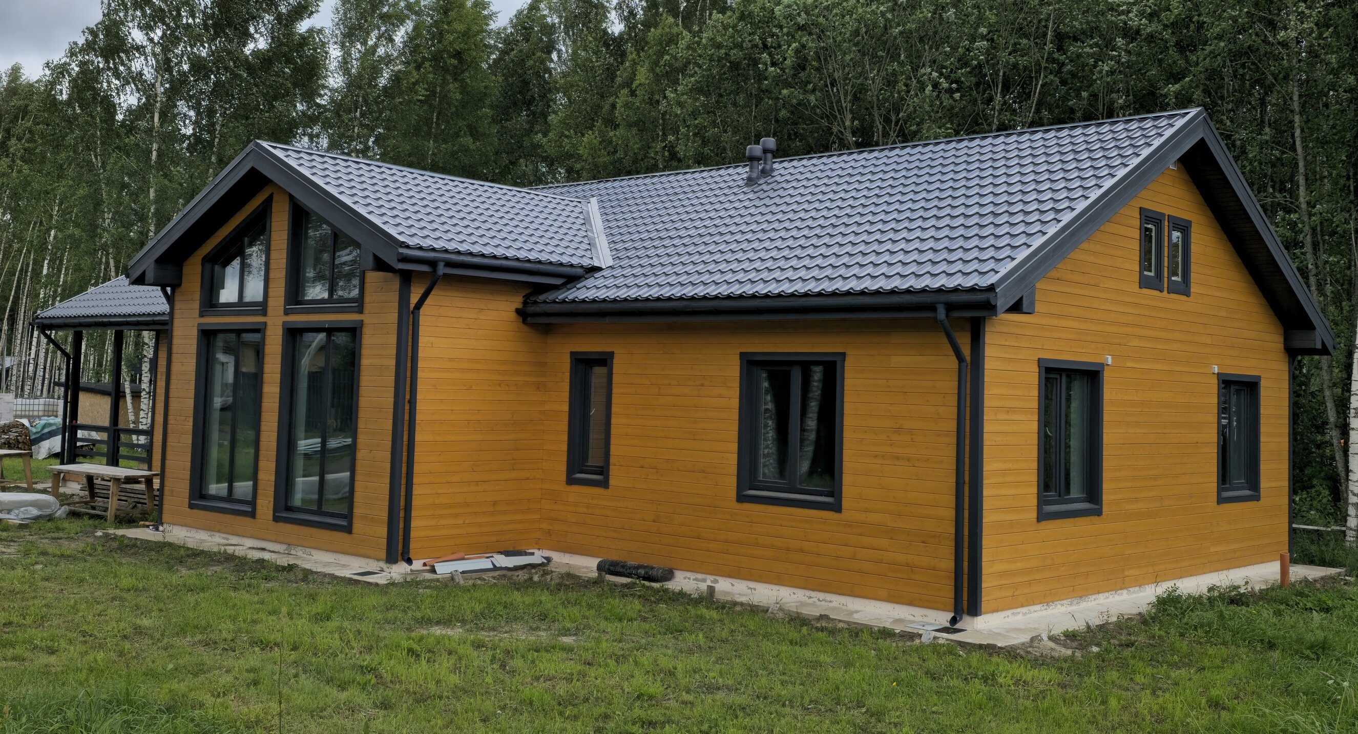 Одноэтажный каркасный дом 10х19м по проекту ДК-117 в поселке Березовка Всеволожского района ЛО